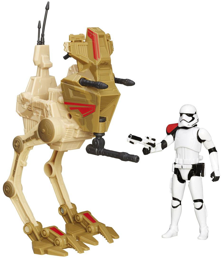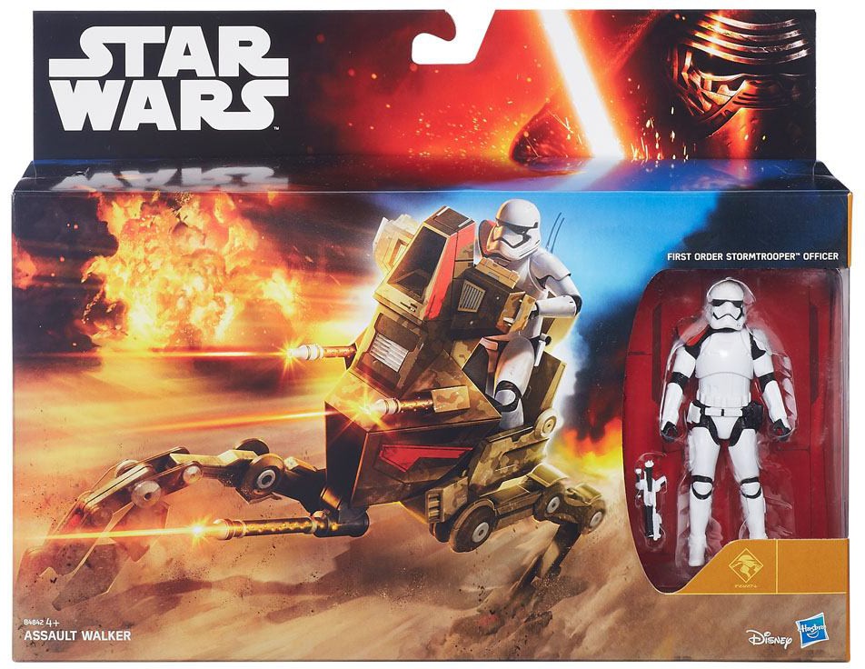 These mobile assault walkers operate as mechanized cavalry units, storming enemy positions and running down fleeing troops. Take command of a desert fantasy with this Assault Walker figure and First Order Stormtrooper Officer figure.