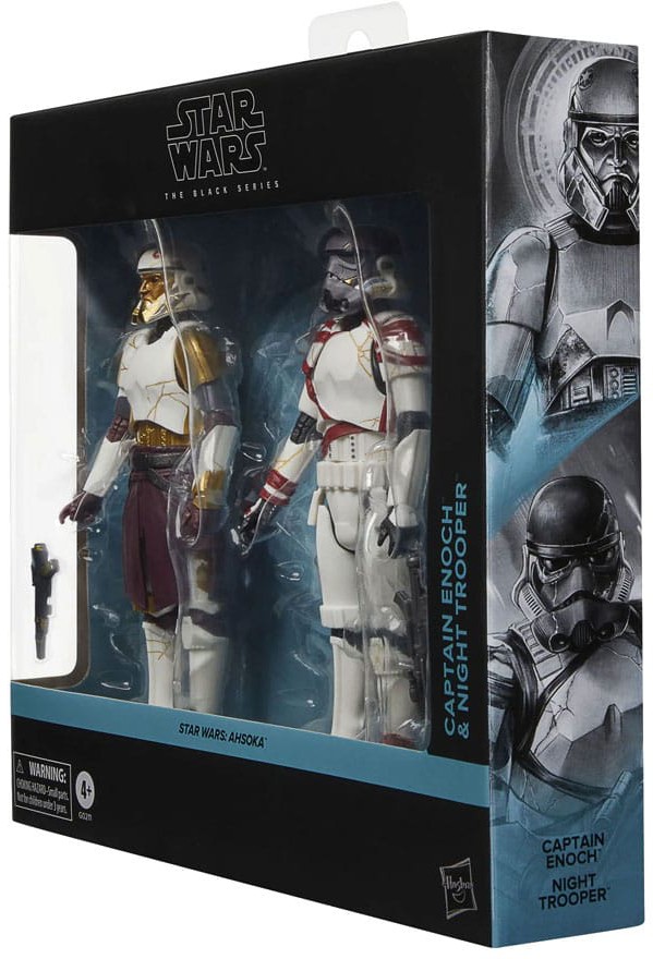 Star Wars The Black Series includes 6 inch action figures, vehicles, and roleplay items from the 40-plus-year legacy of the Star Wars galaxy, letting fans create galactic scenes with a faithfulness to Star Wars comic books, movies, and series. This Star Wars action figure 2-pack is detailed to look like Captain Enoch & a Night Trooper from Star Wars: Ahsoka. With exquisite features and decoration, The Black Series embodies the quality and realism that Star Wars devotees love. May the Force be with you!