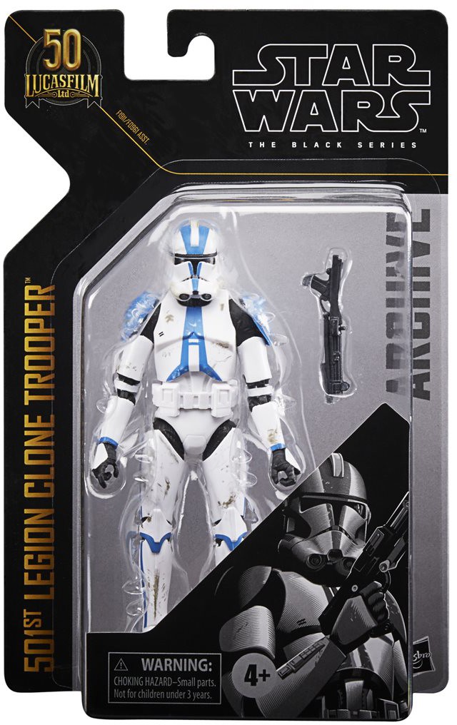 Recall intense moments from the Star Wars Galaxy with this Star Wars The Black Series Archive Lucasfilm 50th Anniversary 501st Legion Clone Trooper figure with accessory, featuring premium deco across multiple points of articulation.