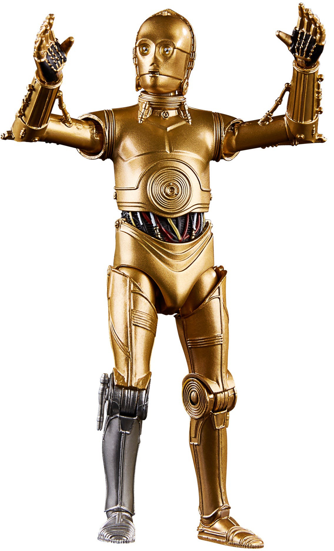 The 6-inch-scale Black Series figure is detailed to look like the C-3PO character from Star Wars: A New Hope, featuring premium detail and multiple points of articulation.