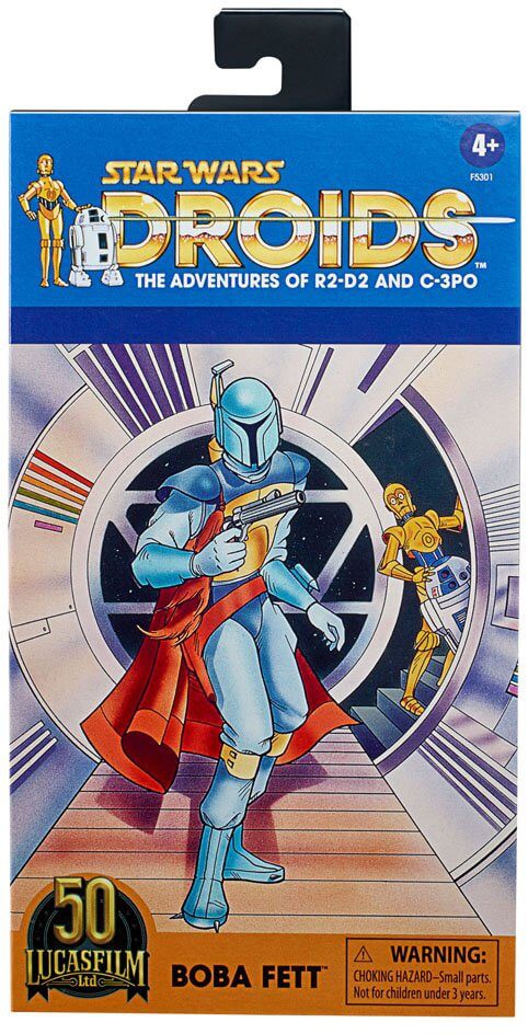 The 6-inch-scale Black Series figure is detailed to look like the Boba Fett character from Star Wars: Droids, featuring premium detail and multiple points of articulation.