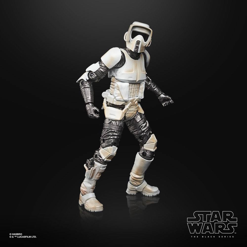 The 6-inch-scale Carbonized Collection Scout Trooper figure is carefully detailed to look like the character from the live-action streaming series The Mandalorian on Disney+, featuring premium detail, multiple points of articulation, and a metallic finish.
