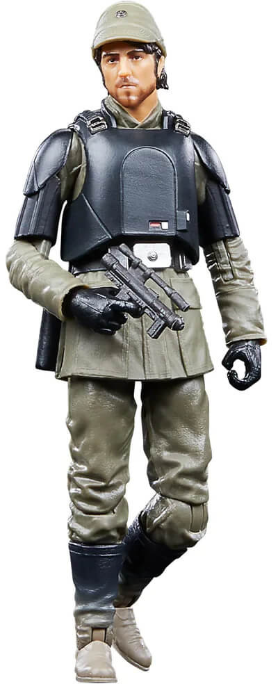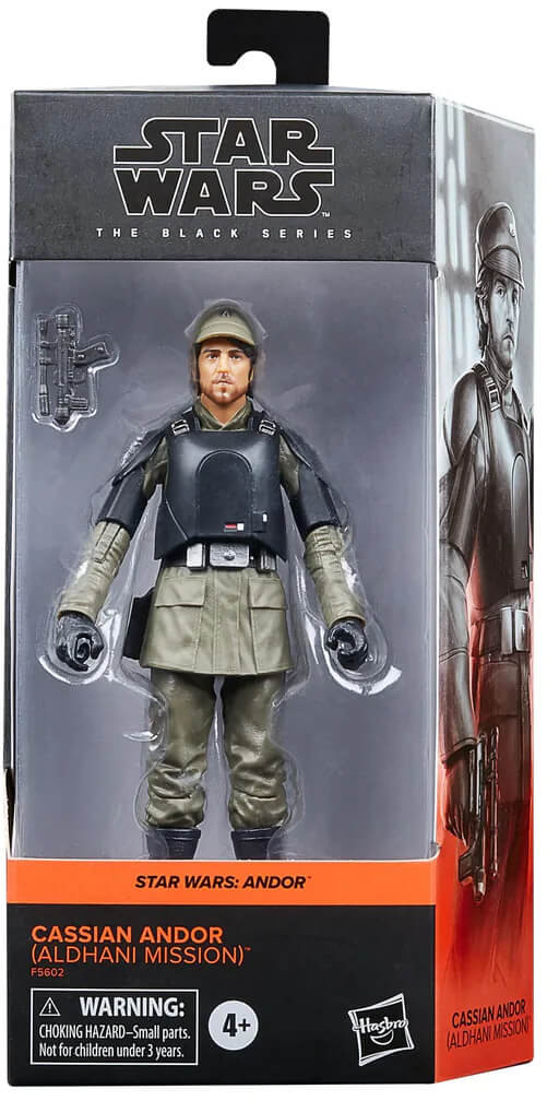 The 6-inch-scale Black Series figure is detailed to look like the Cassian Andor (Aldhani Mission) character from Star Wars: Andor, featuring premium detail and multiple points of articulation.