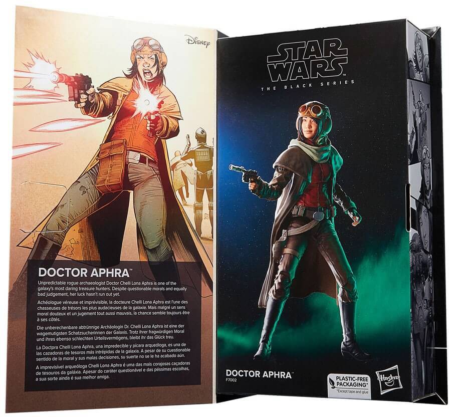 This collectible 6-inch-scale Black Series figure is detailed to look like Doctor Aphra from Star Wars: Doctor Aphra comic books, featuring premium detail, multiple points of articulation, and a comics-inspired blaster accessory.