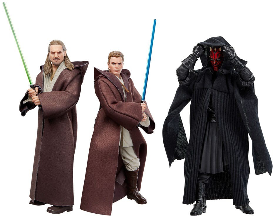 Var vänlig ställ din fråga om produkten "Star Wars Black Series: Episode I - Qui-Gon Jinn, Darth Maul, Obi-Wan Kenobi 3-Pack" nedan, så svarar vi så snart som möjligt!