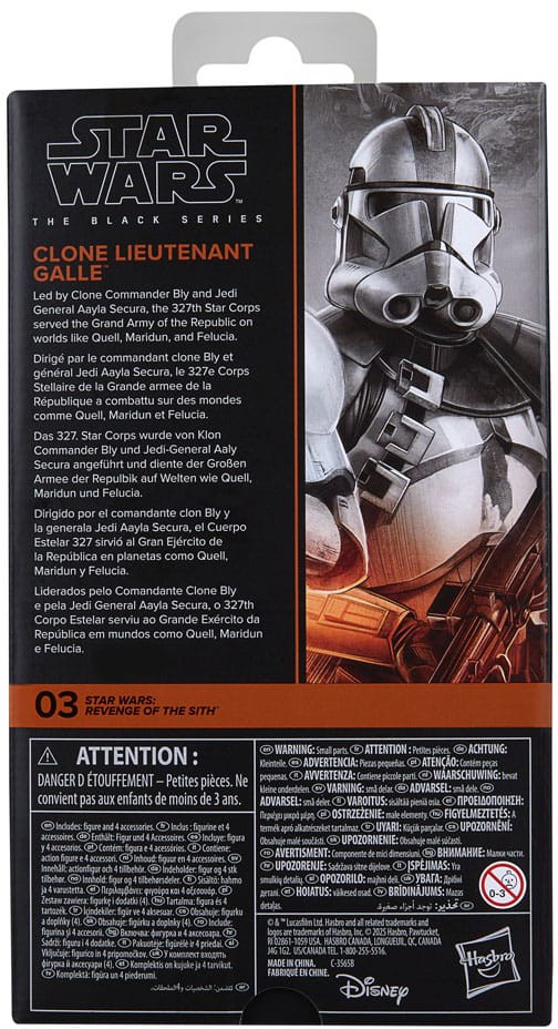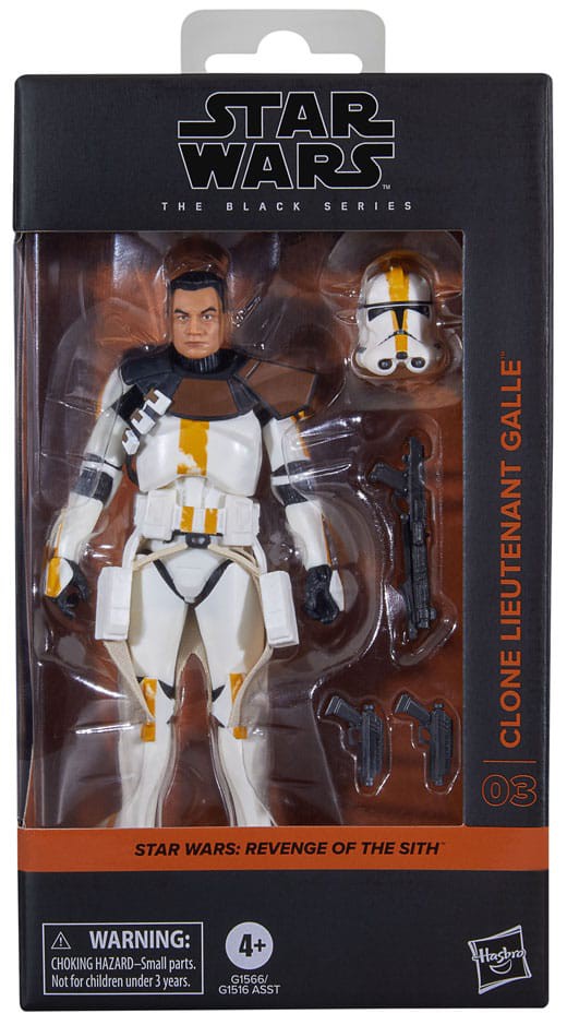 Star Wars The Black Series includes 6 inch action figures, vehicles, and roleplay items from the 40-plus-year legacy of the Star Wars Galaxy, letting fans create galactic scenes with a faithfulness to Star Wars comic books, movies, series, and more. This Star Wars Hasbro action figure is detailed to look like Clone Lieutenant Galle from Star Wars: Revenge of the Sith. With exquisite features and decoration, The Black Series embodies the quality and realism that Star Wars devotees love. May the Force be with you!