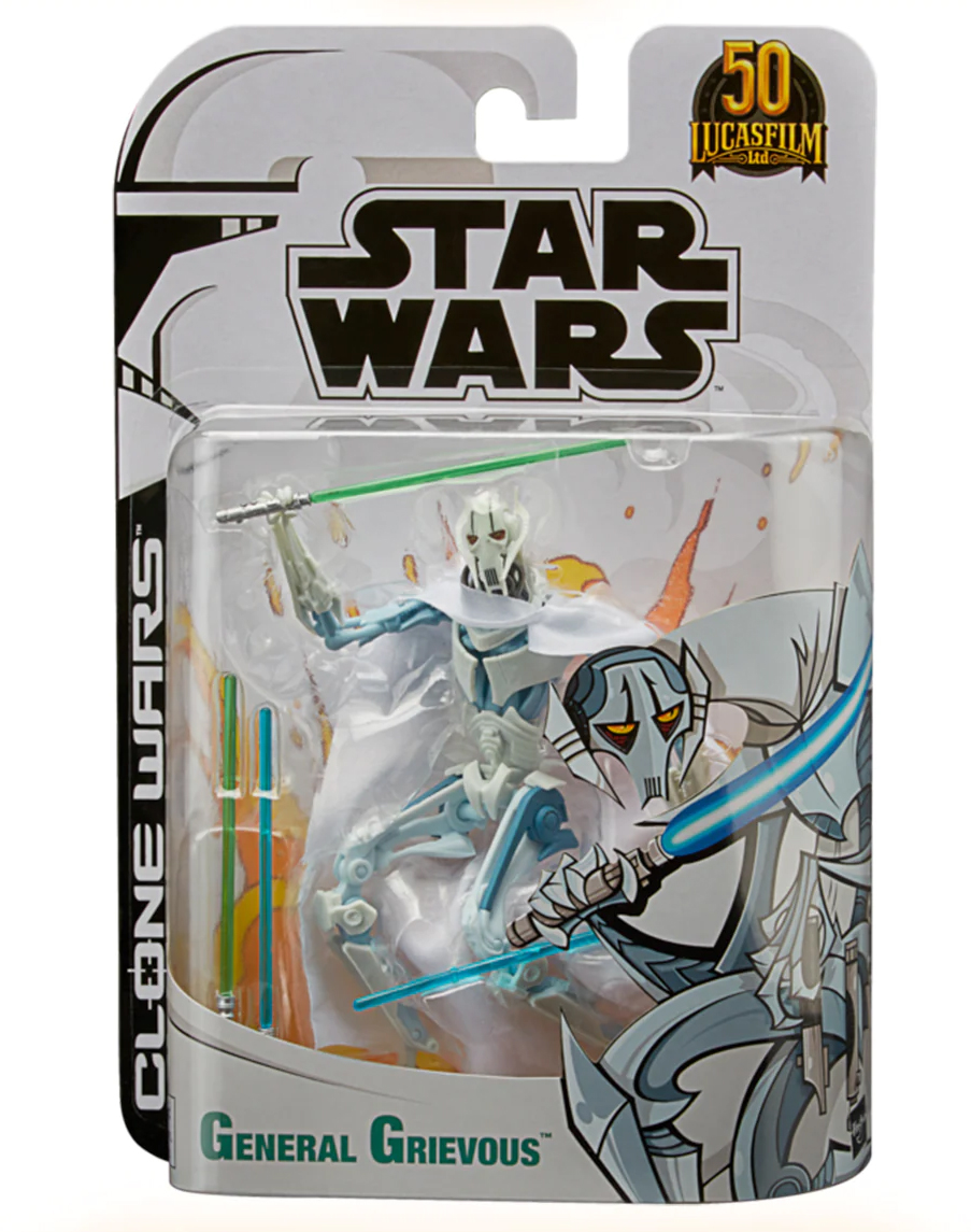 The 6-inch-scale Black Series figure is detailed to look like the General Grievous character from Star Wars: Clone Wars, featuring premium detail and multiple points of articulation.