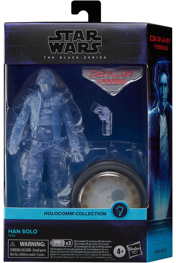 Star Wars The Black Series includes 6 inch action figures, vehicles, and roleplay items from the 40-plus-year legacy of the Star Wars Galaxy. This Star Wars action figure is detailed to look like a hologram version of Han Solo, featuring premium detail and multiple points of articulation. Plus, each figure in The Black Series Holocomm Collection comes with a light-up holopuck for display!