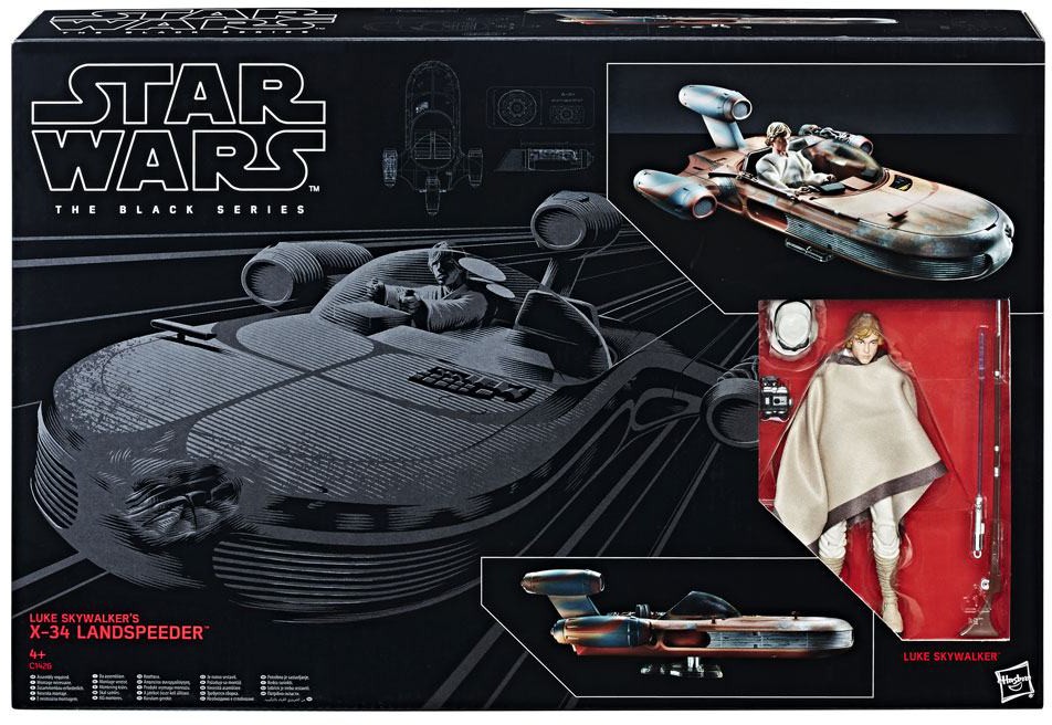 Star Wars Black Series actionfigur av Luke med Landspeeder från Hasbro.
