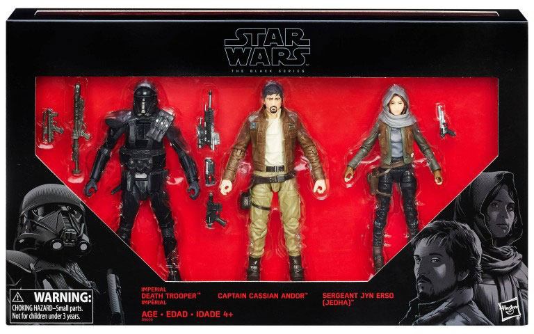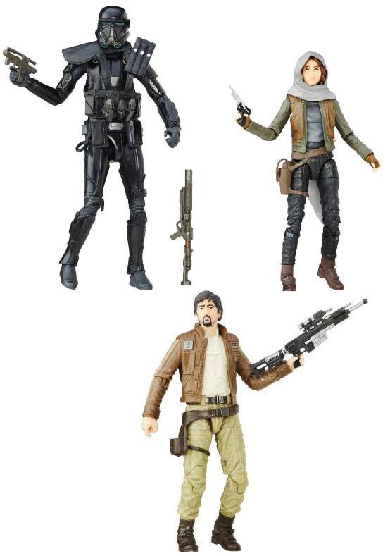 From "Star Wars: Rogue One" comes this pack including action figures of Imperial Death Trooper, Captain Cassian Andor and Sergeant Jyn Erso. The 6-inch scale figures come with accessories in a window box packaging.