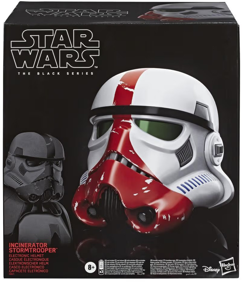 Fans can imagine the biggest battles and missions in the Star Wars saga with premium roleplay items from Star Wars The Black Series! With exquisite features and decoration, this series embodies the quality and realism that Star Wars devotees love. This roleplay item with premium deco, realistic detail, and TV series-inspired design is a great addition to any Star Wars fan’s collection. Featuring a voice changer that distorts the wearer’s voice to sound like an Incinerator Stormtrooper from The Mandalorian live-action TV series on Disney Plus, fans can imagine what it was like for these specialized troopers to suit up for battle!