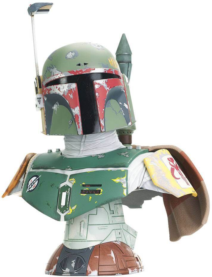 The Star Wars galaxy's favorite bounty hunter in now a Legend in 3D! Measuring approximately 10" tall, this half-scale bust of Boba Fett is based on his appearance in Star Wars: The Empire Strikes Back, and features detailed sculpting and paint applications. Limited to only 1,000 pieces it comes packaged in a full-color box with a numbered certificate of authenticity. Designed by Joe Allard and sculpted by Joe Menna.