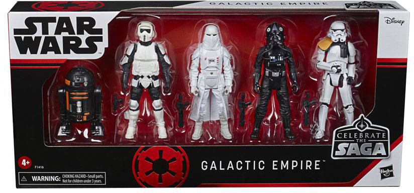 ICONIC STAR WARS CHARACTERS: The Star Wars Celebrate the Saga Galactic Empire pack comes with TIE Fighter Pilot, Snowtrooper, Stormtrooper Squad Leader, Scout Trooper action figures, featuring multiple points of articulation, and R2-Q5 figure