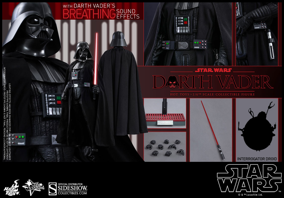 Sideshow Collectibles and Hot Toys welcome fans to the dark side and are excited to officially introduce the highly-detailed and amazingly crafted Star Wars Episode IV: A New Hope sixth scale Darth Vader Collectible Figure, complete with the Sith Lord’s iconic breathing sound effects and LED-lighted functions!