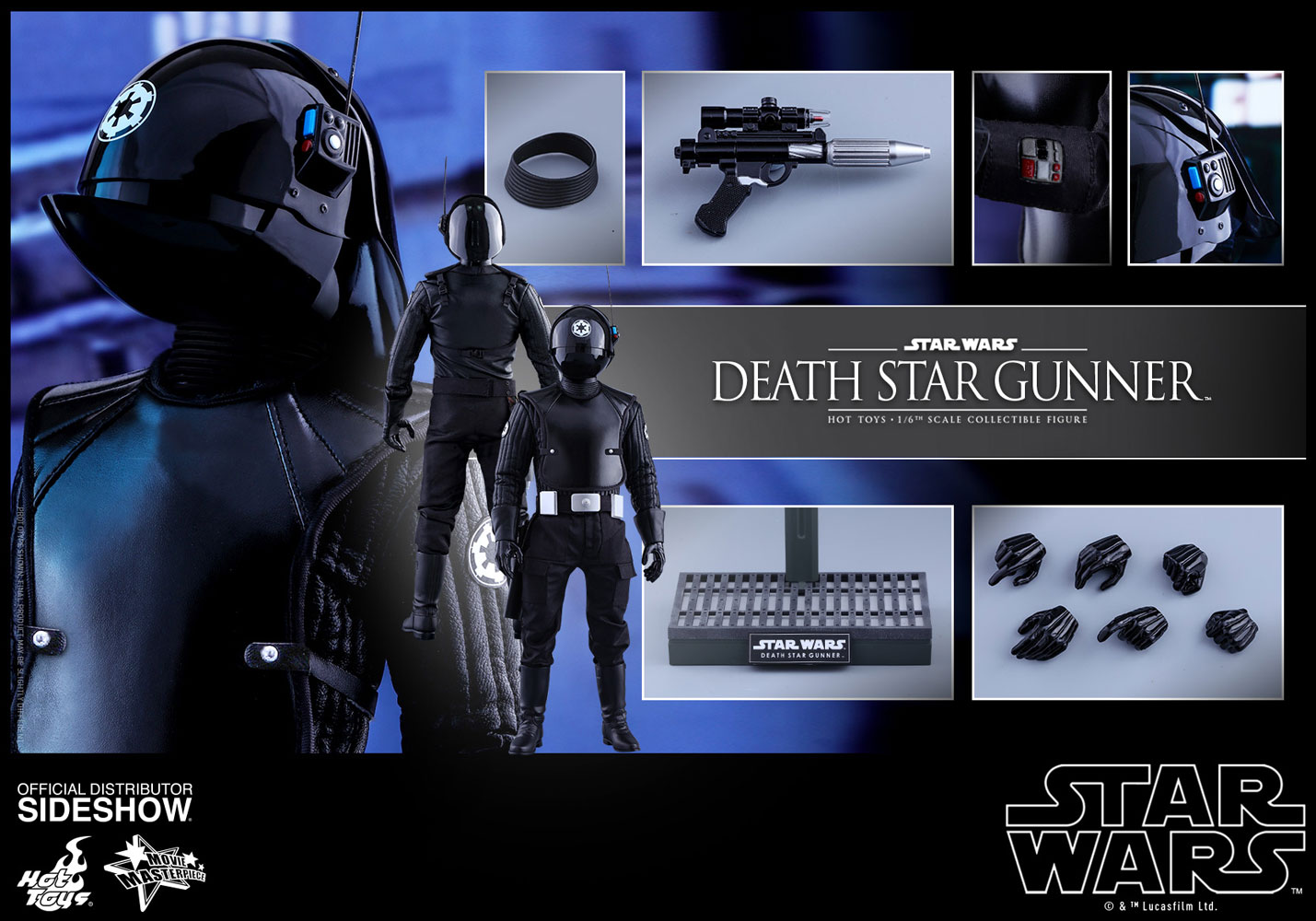 Specially designed figure stand with Death Star Gunner nameplate and Star Wars logo