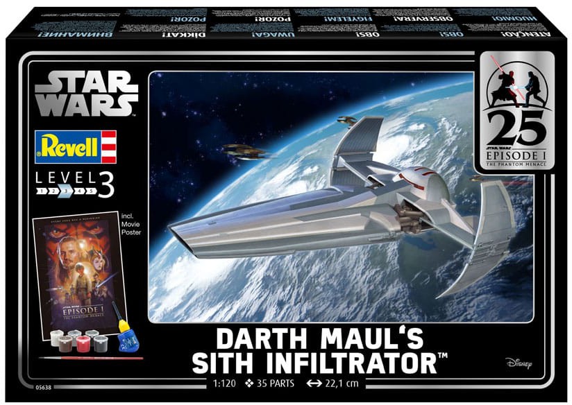 Lättbyggd modellsats av Darth Mauls berömda skepp från Star Wars Episode 1. Förutom grundfärger ingår även lim och penslar.