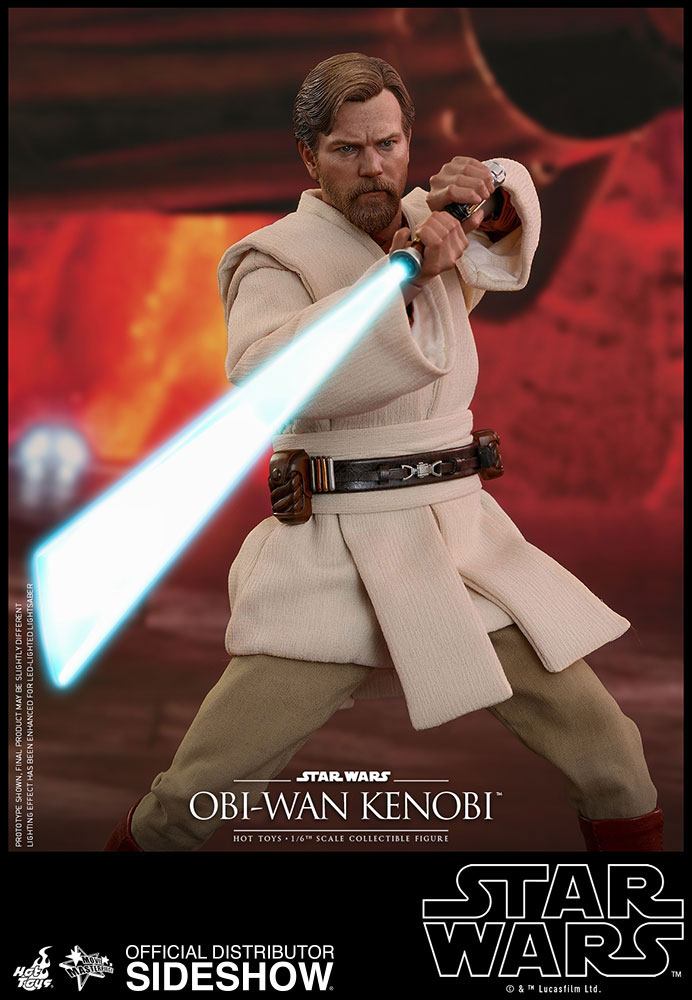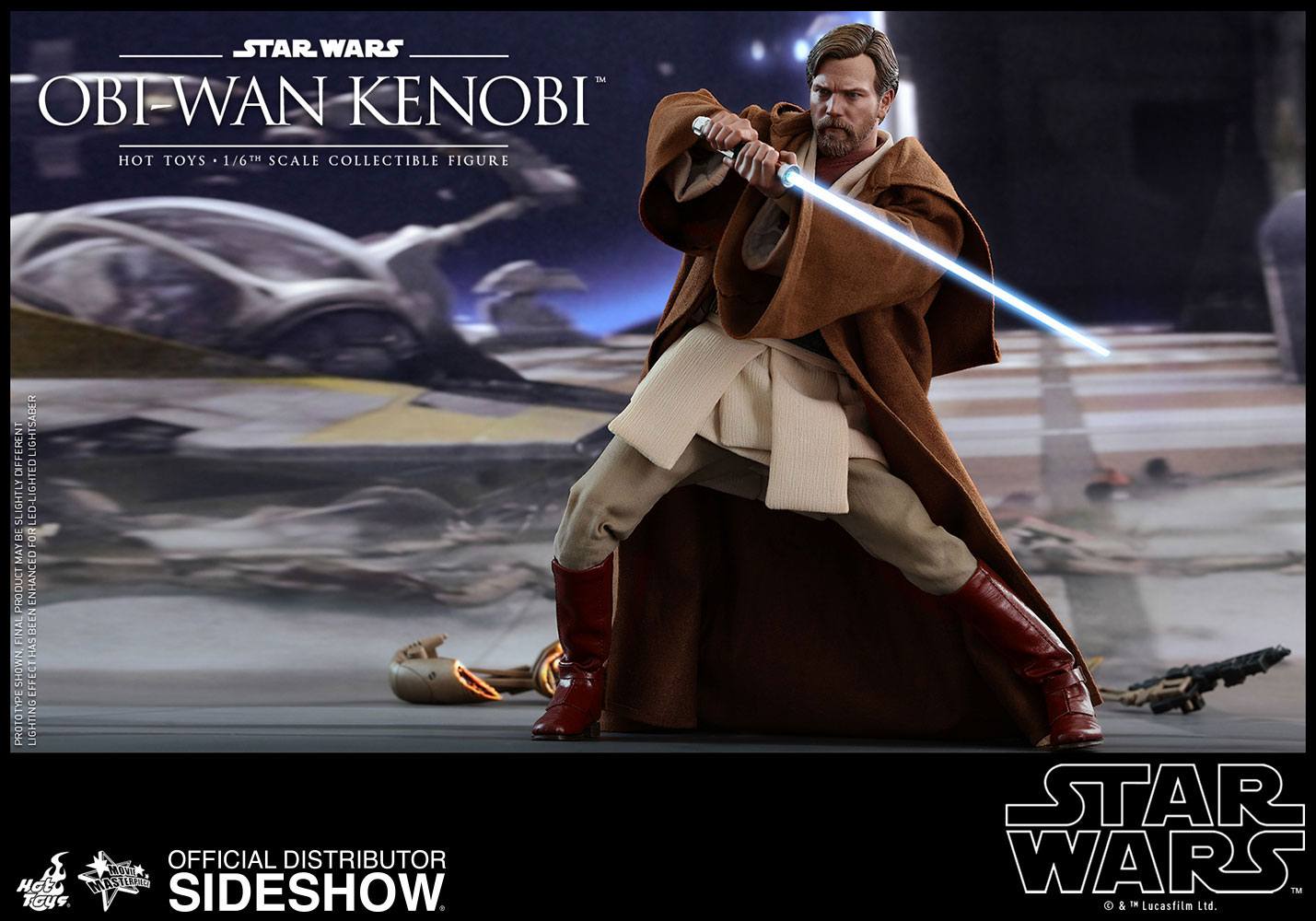 Sideshow and Hot Toys are very excited to officially present the new sixth scale collectible figure of Obi-Wan Kenobi from Star Wars: Episode III Revenge of the Sith! Sophisticatedly crafted based on the appearance of Obi-Wan Kenobi in the film, the 1/6th scale collectible figure features a newly developed head sculpt with a stunning likeness, a skillfully tailored Jedi robe and tunic, an LED light-up lightsaber, severed battle droid parts and a specially designed figure base with interchangeable graphic cards!