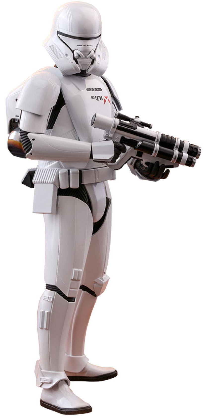 The highly accurate collectible figure is specially crafted based on the image of a First Order Jet Trooper in Star Wars: The Rise of Skywalker. This specialized trooper features a newly refined helmet and armor, highly detailed jetpack, beautifully tailored fabric under-suit, highly-detailed weapon, and a specially designed figure stand.
