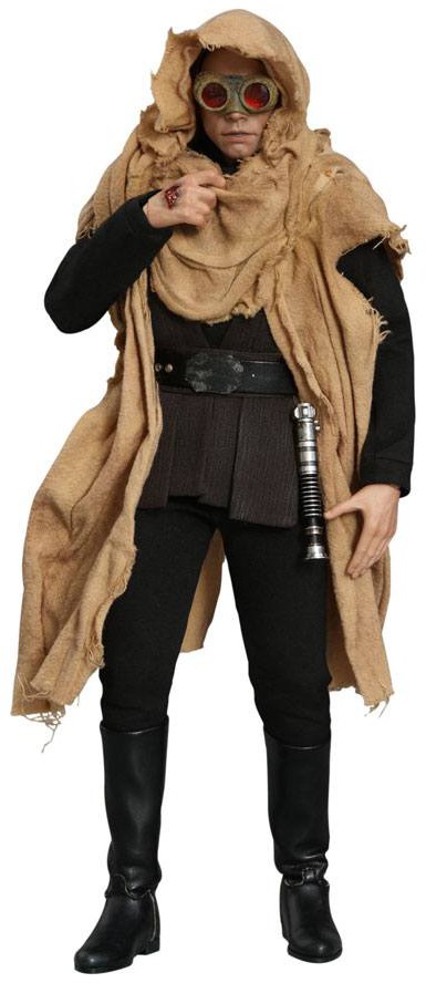 This Deluxe Version will exclusively include an additional head sculpt with an interchangeable all-new hair sculpture, an interchangeable battle-damaged right hand, a dark grey tunic with belt, and the Tatooine sandstorm goggles and cloak as seen in the deleted scenes.