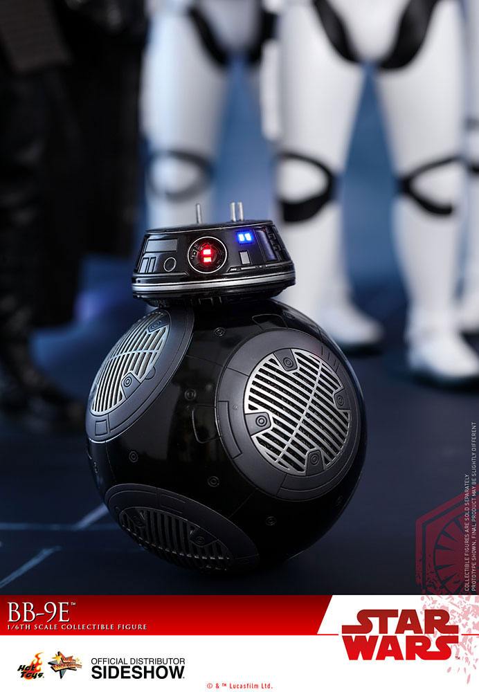 Sideshow and Hot Toys are very thrilled to officially introduce the sixth scale BB-9E collectible figure from Star Wars: The Last Jedi! The highly accurate collectible figure is specially crafted on the appearance of BB-9E in the film. This First Order droid features a newly developed spherical body with mechanical details under the circular grilles, a specially applied glossy black and metallic silver painting, and a magnetically attached head with a LED light-up feature.