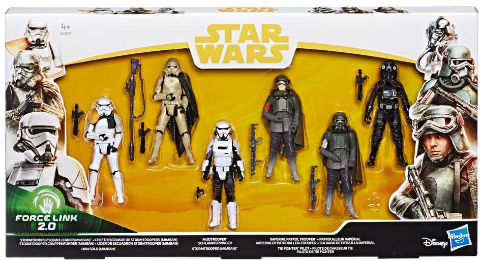 Includes Imperial Patrol Trooper, The TIE Fighter Pilot, Stormtrooper (Mimban), Mudtrooper, Han Solo (Mimban), Stormtrooper Officer (Mimban).