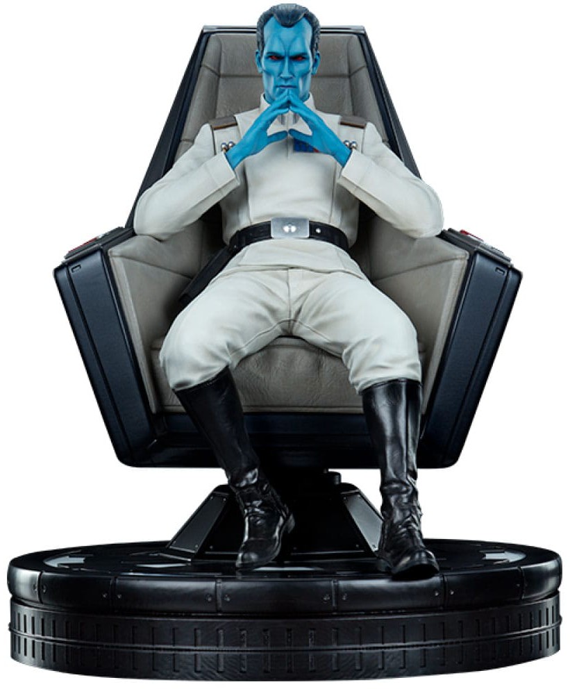 Experience the ultimate collectible statue with the Grand Admiral Thrawn Premium Format Figure from Sideshow Collectibles. This high-quality statue measures 43 cm in height and weighs approximately 4.5 kg. Thrawn sits in his iconic pose, dressed in his white uniform, surveying his enemies from his seat on a Star Destroyer. Two interchangeable portraits and hands are included to give different expressions. Perfect for Star Wars fans and collectors who want an impressive addition to their collection.