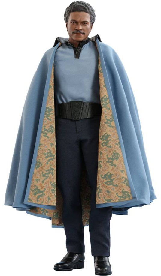 Den mycket noggranna Lando Calrissian Sixth Scale Collectible Figure är skickligt utformad baserat på hans utseende i filmen med en nyutvecklad huvudskulptur med häpnadsväckande likhet, noggrant skräddarsydd outfit och kappa, två blaster, en kommunikator, en handledslänk, en figurbas med Cloud City-bakgrunden i en specialdesignad retro-stilförpackning!