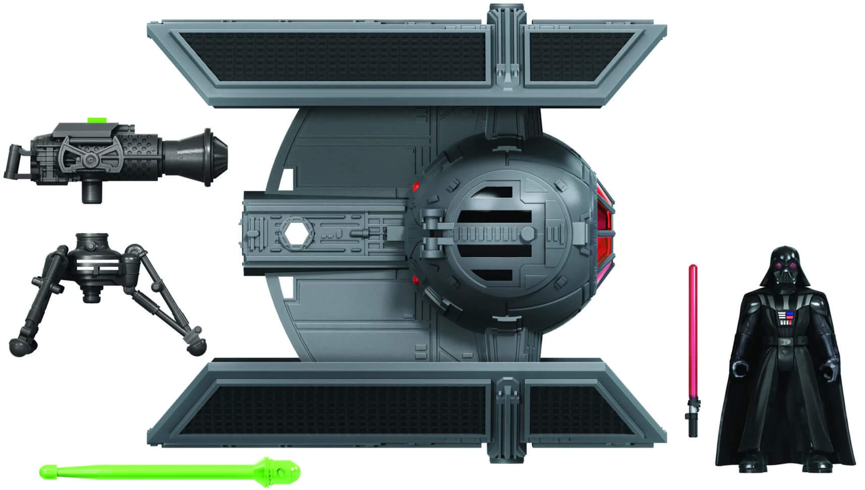 Darth Vader flög sin distinkta experimentella TIE-fighter i slaget vid den första Dödsstjärnan. Med hjälp av dess kraftfulla blasters och hans kusliga förmågor med Kraften sprängde han rebellernas starfighters till inget mer än glittrande fragment!