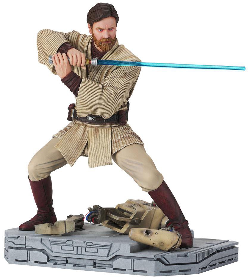 Obi-Wan Kenobi svingar sin ljussabel för att försvara republiken i denna helt nya staty i skala 1:6! Statyn av Obi-Wan är ungefär 30 cm hög med en bas av demonterade Battle Droids. Statyn är begränsad till endast 1 000 exemplar och kommer med ett numrerat äkthetsintyg. Produkten är designad av Joe Allard och skulpterat av Gentle Giant Studios.