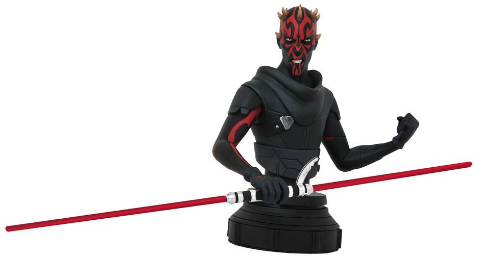 Sith-krigare är nu den senaste animerade bysten. Baserat på hans framträdande i Star Wars: Rebels animerade serie, använder Darth Maul sin dubbelbladiga ljussabel för att förbereda sig inför sina Jedi-motståndare. Den här minibusten på 1/7 skala är ungefär 15 cm lång och har detaljerade skulptur- och färgapplikationer. Begränsad till endast 3000 stycken. Designad av Barry Bradfield. Skulpterad av Paul Harding.