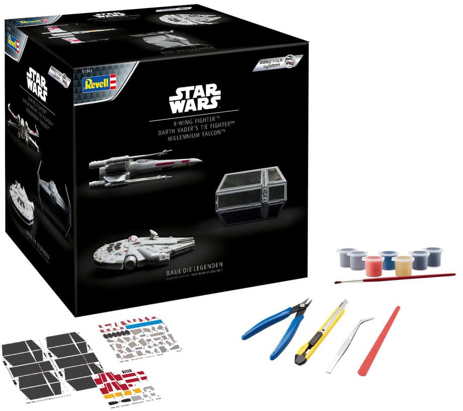With the new Revell Advent Calendar, Kids and Star Wars fans can experience their biggest Star Wars adventure. Each calendar window contains a part to build the Millennium Falcon, a X-Wing Fighter and Darth Vader's Tie Fighter
