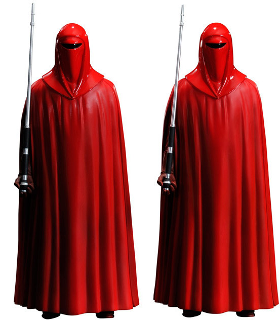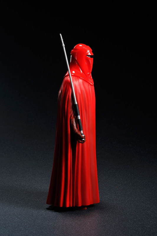 Kotobukiya proudly presents the EMPEROR´S ROYAL GUARD 2 pack ARTFX+ STATUE. Based on their appearance in Star War: Return of the Jedi, the Royal Guards stand at attention, ever vigilant in protecting the Emperor. Beautifully sculpted in 1/10th scale, the Royal Guards stand just over 7 inches tall, perfect for building and collecting any sized display. With their highly detailed sculpt and striking red uniforms, the Royal Guards will stand out on your shelves. These Royal Guards make for an impressive display on their own, or guarding the rest of Kotobukiya´s Star Wars ARTFX+ statues.