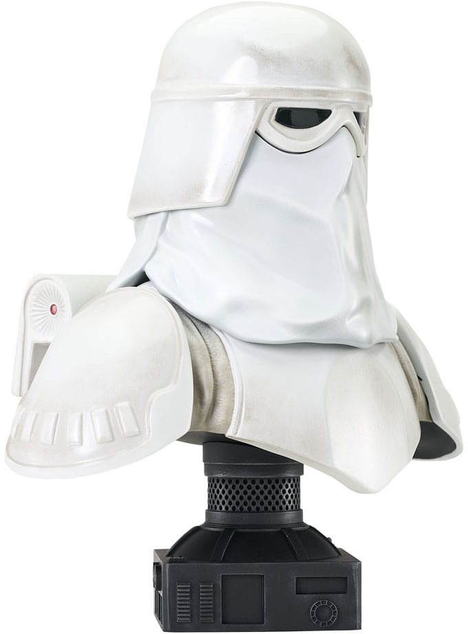 Vintern kommer, så varför inte luta sig in i den med den nya 1/2-skaliga Legends in 3-D-bysten av en fruktansvärd Imperial Snowtrooper? Imperiets ultimata krigare i kallt väder, Snowtrooper, avbildas här som de dök upp i The Empire Strikes Back, i huvud- och axelformat ovanpå en bas av faux-metall. Den är ca 25 cm hög och har detaljerad skulptering och färgapplikationer. Den levereras i en färgglad låda med ett numrerat äkthetscertifikat och är begränsad till endast 1 000 exemplar.
