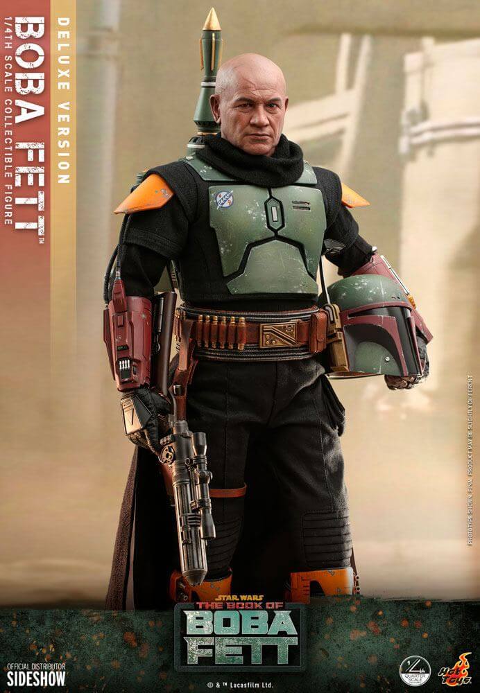 Baserad på karaktärens utseende i The Book of Boba Fett, denna figur är ca 45 cm hög ned detaljerad rustning och hjälm, utbytbart huvud med exakt likhet, skräddarsydda kläder, avtagbar jetpack, blaster rifle, miniatyr hologram, och eldkastareffekt.