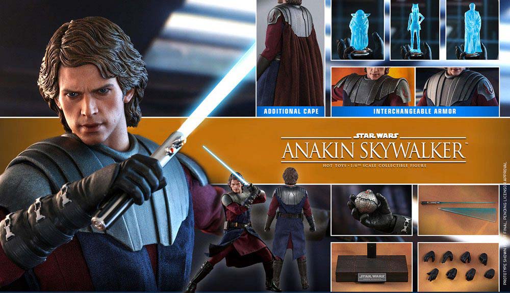 Den 1/6 skaliga samlingsfiguren är mästerligt utformad baserat på utseendet på Anakin Skywalker i mycket hyllade animationsserier. Hans signatur-LED-lampa, ett antal utbytbara händer, en termisk detonator, en hologramprojektor och flera hologramfigurer som representerar Ahsoka Tano ™, Yoda ™ och Obi Wan Kenobi ™ avrundar uppsättningen så att du kan ta dig an droid arméer.