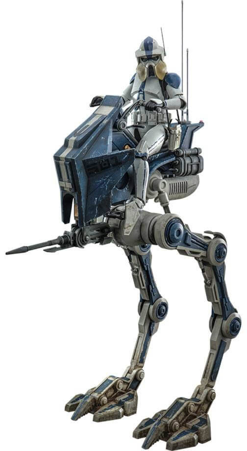 The stunningly crafted 501st Legion AT-RT figure stands at approximately 64cm tall with the battalion's signature blue paint application and 501 marking with weathering effects, as well as an astonishing range of articulations allowing different display poses.