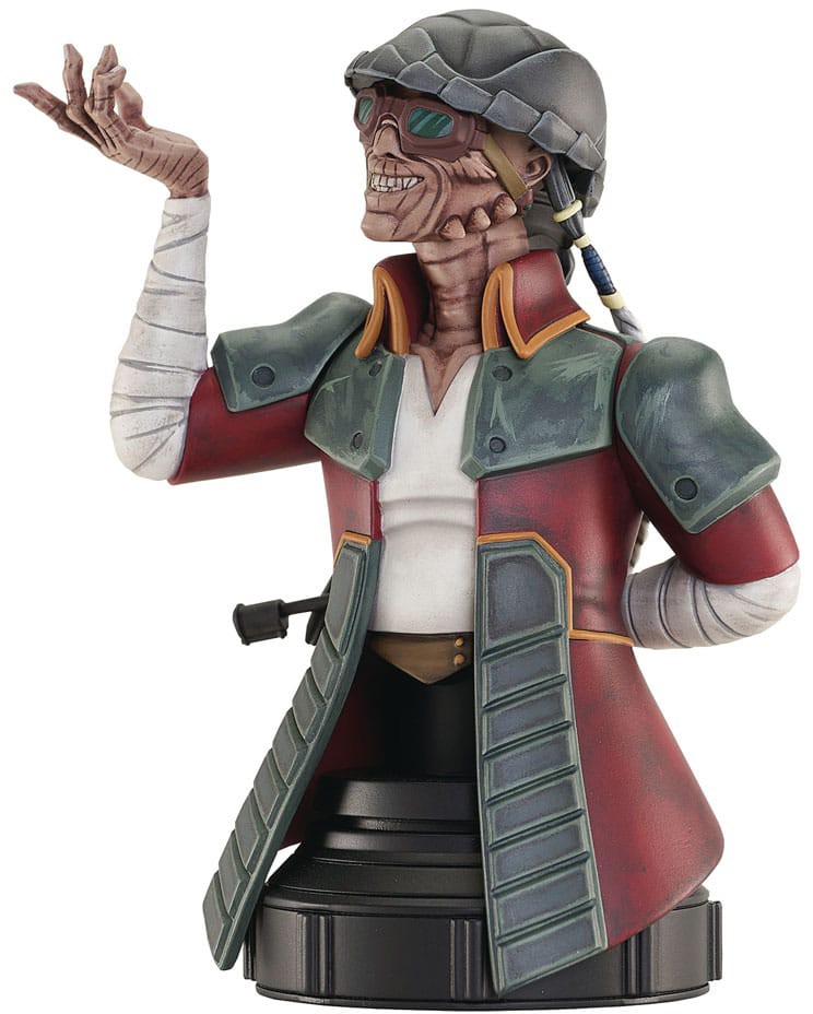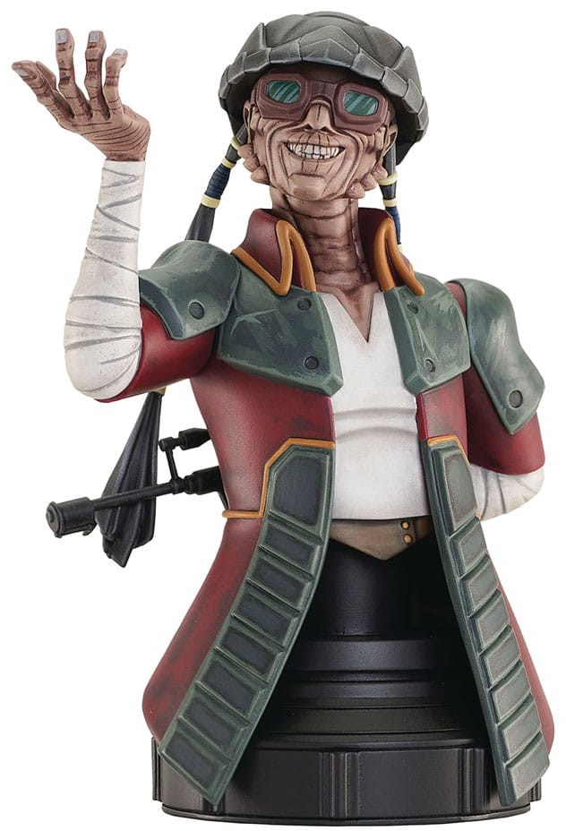 Outer Rim-piraten Hondo Ohnaka gör sin debut i den animerade Clone Wars-minibusten från Gentle Giant Ltd! Den tuffa Weequay har ett vänligt flin, men håller en blaster bakom ryggen, och denna minibust i resin på ca 15 cm tillverkas i endast 3 000 exemplar och levereras med ett numrerat äkthetsintyg i en fullfärgad låda.