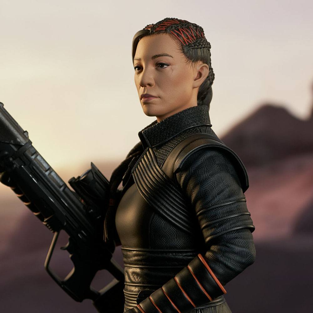 Straight outta Tatooine, the chief enforcer for daimyo Boba Fett is now an all-new 7-inch mini-bust! Holding her powerful MK sniper rifle, this 1/6 scale Fennec comes with two interchangeable heads, so you can display her helmeted and unhelmeted, Limited to only 3000 pieces, it comes packaged with a numbered certificate of authenticity in a full-color box.