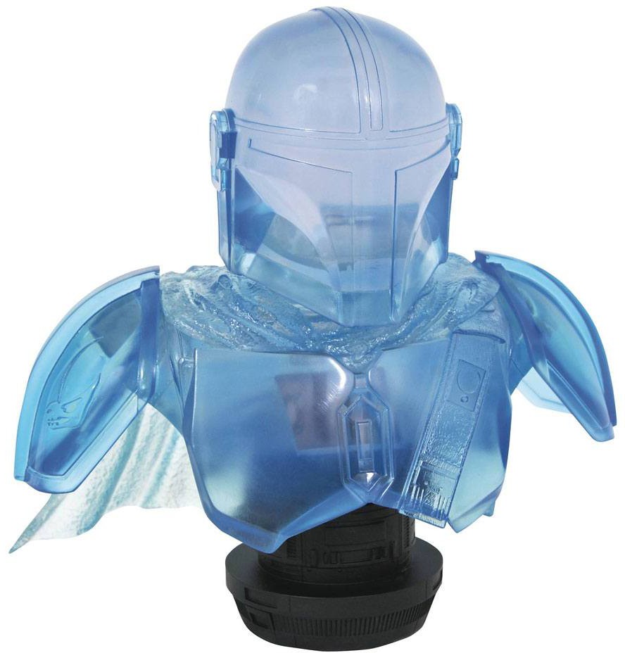 Incoming transmission! You have something the Mandalorian wants, and he's not going to stop until he gets it back! This approximately 10-inch bust captures Din Djarin in clear resin, with a light-up feature to simulate a hologram message! It comes packaged in a full-color box with a numbered certificate of authenticity. Designed by Joe Allard, sculpted by Joe Menna! Due to the limited production run of this product, orders will be restricted to 2 pieces per account. Limited to 1000 pieces.