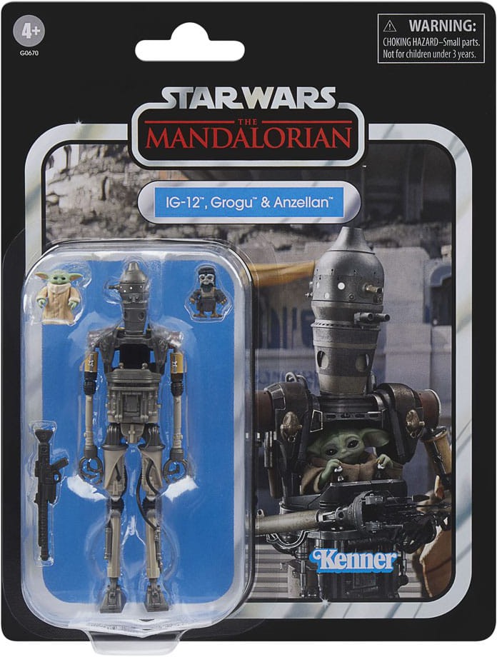 Celebrate the legacy of Star Wars with premium vehicles, playsets, and action figures from Star Wars The Vintage Collection. (Additional products each sold separately. Subject to availability.) Based on IG-12, Grogu & an Anzellan from Star Wars: The Mandalorian, these 3.75-inch-scale figures make a great addition to any fan's collection. Inspired by the original line, these collectibles feature premium detail and design across product and packaging, as well as collector-grade deco that fans have come to know and love. May the Force be with you!