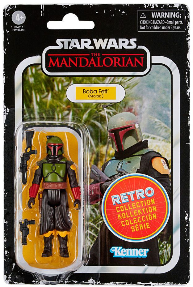 Den 3,75 tum stora Retro Collection-figuren är detaljerad för att se ut som Boba Fett (Morak) från Star Wars: The Mandalorian live-action-serien på Disney Plus, med design och detaljer inspirerade av Star Wars-figurer från 1970-talet.