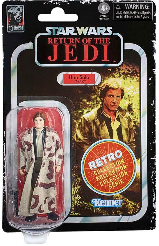 Den 3,75 tum stora Retro Collection-figuren är detaljerad för att se ut som Han Solo (Endor) från Star Wars: Return of the Jedi, med design och detaljer inspirerade av Star Wars-figurer från 1970-talet