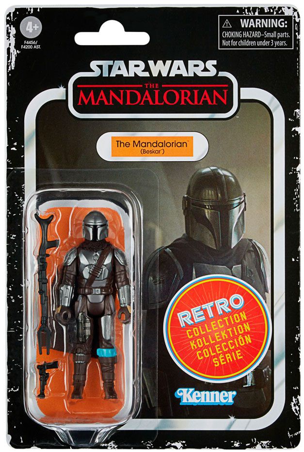 Den 3,75 tum stora Retro Collection-figuren är detaljerad för att se ut som karaktären The Mandalorian (Beskar) från Star Wars: The Mandalorian live-action-serien på Disney Plus, med design och detaljer inspirerade av 1970-talets Star Wars-figurer.