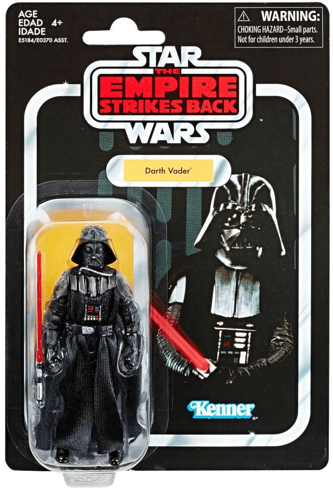 Longtime fans of Star Wars are going to love this classic Kenner-style packaging, right down to the old-fashioned Kenner logo. And each Vintage Action Figure comes individually packaged with awesome accessories like blasters, lightsabers, and removable helmets.