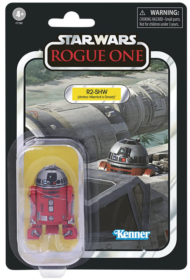 Astromech-droider är en serie mångsidiga verktygsrobotar som vanligtvis används för underhåll och reparation av rymdskepp och relaterad teknologi. R2-enheten är ett populärt exempel på dessa droider. Denna R2-SHW (Antoc Merricks Droid) actionfigur är inspirerad av karaktären i Rogue One: A Star Wars Story.