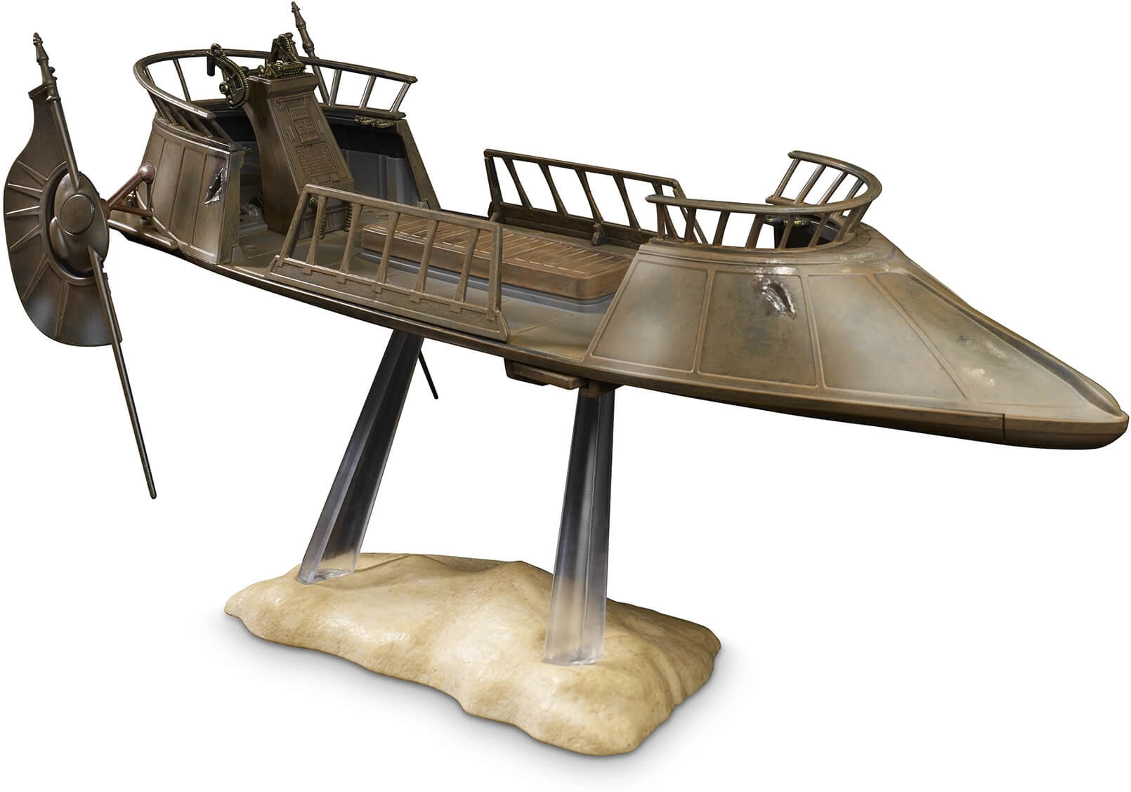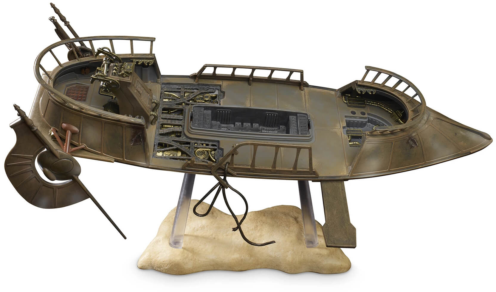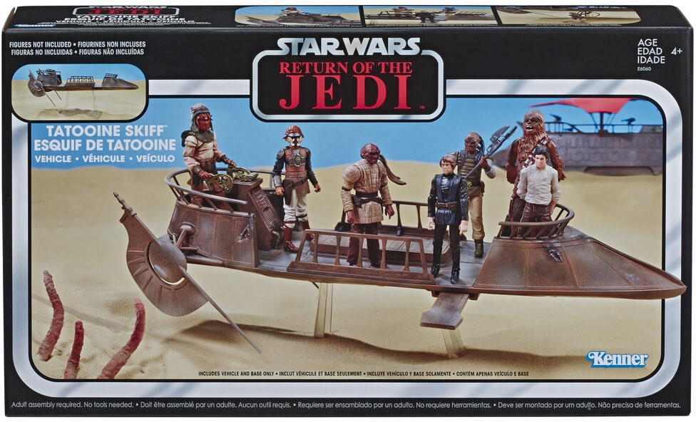 Add to Jabba the Hutt's motorpool with the Star Wars The Vintage Collection Skiff Vehicle! The first all-new Skiff since the 1980s, this nifty vehicle from Return of the Jedi includes a display stand. For use with 3 3/4-inch action figures (not included.)