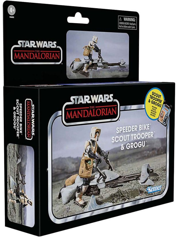 SPEEDER BIKE, SCOUT TROOPER & GROGU: Scout troopers used speeder bikes for a range of missions -- including, in this case, capturing the mysterious child known as Grogu on behalf of Imperial interests