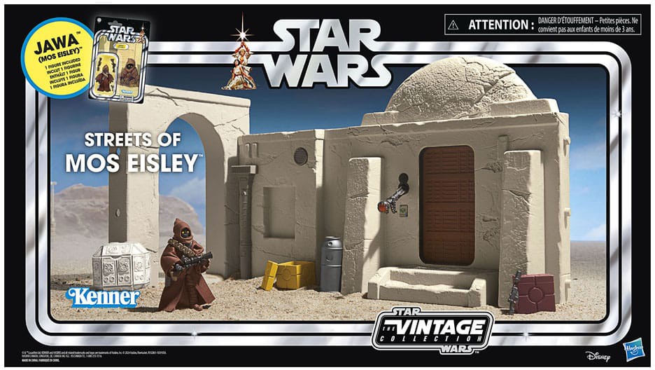 Celebrate the legacy of Star Wars with premium vehicles, playsets, and action figures from Star Wars The Vintage Collection. Based on the classic original trilogy film Star Wars: A New Hope, this 3.75-inch-scale playset with Jawa (Mos Eisley) figure makes a great addition to any fan's collection. Inspired by the original line, these collectibles feature premium detail and design across product and packaging, as well as collector-grade deco that fans have come to know and love. May the Force be with you!