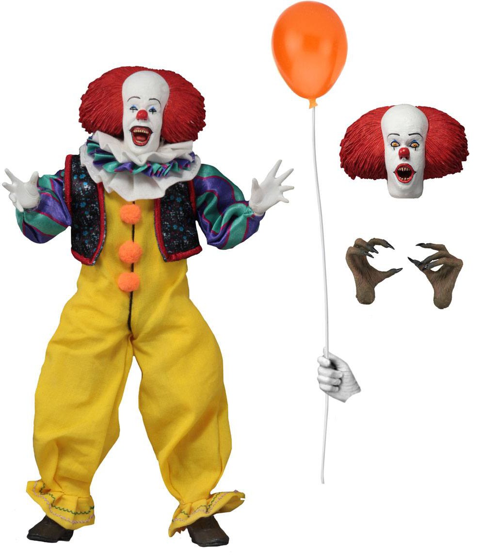 Pennywise som spelad av Tim Curry är ungefär 20 cm och bär en sydd skärmnoggrann skildring av den ikoniska dräkten. Clownen kommer också med en ballong, två utbytbara huvuden och utbytbara händer (vanlig handske och monster)!