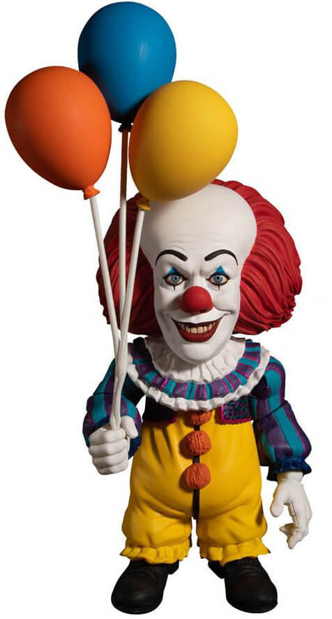 Pennywise actionfigur i Mezcos MDS serie med utbytbara händer och huvuden samt ballonger.